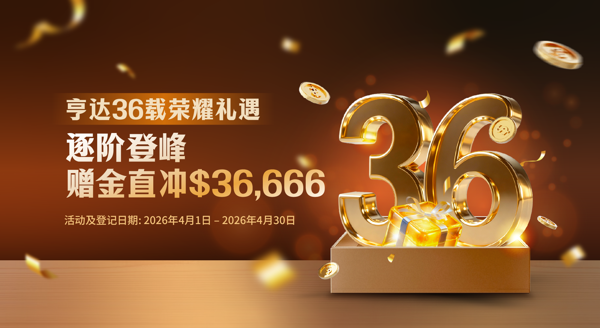 层层进阶,步步加码,让每一次交易更具价值,与亨达共赴36载荣耀之路。
